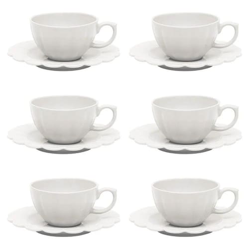 Conjunto de Xícara de Chá com Pires 06 Peças Flora Camélia Oxford - Incluso