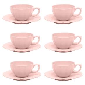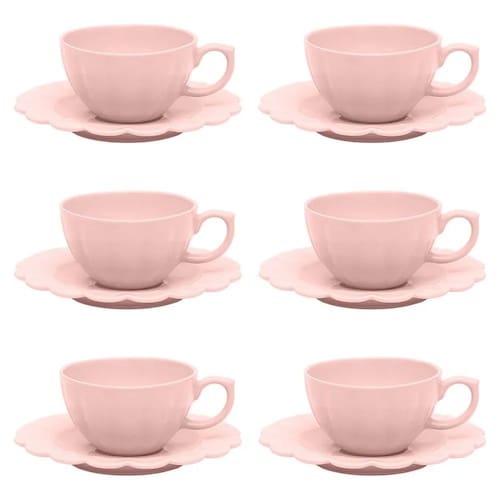 Conjunto de Xícara de Chá com Pires 06 Peças Flora Dália Oxford - Incluso