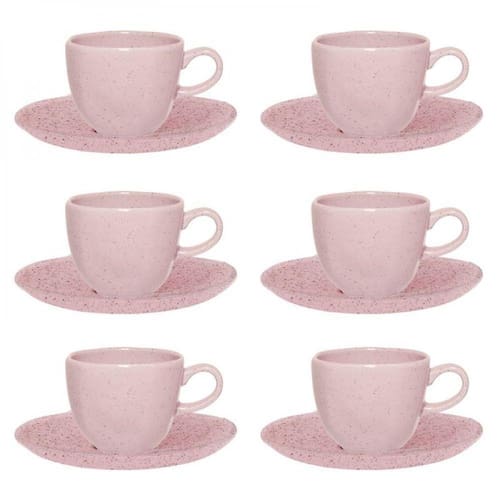 Conjunto de Xícara de Chá com Pires 06 Peças Pink Sand Oxford - Incluso 6 Pires - 16 cm 6 Xícara Chá - 200 ml Conjunto de Xícara de Chá com Pires 06 Peças Pink Sand Oxford - Informações Uso: Resistente a micro-ondas, resistente a lava-louças Material: Porcelana Formato: Sinuoso Decoração: Monocromático