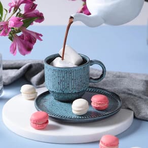 Requinte e beleza em cada peça O conjunto de xícaras de chá com pires Linhas Night Sky da Porto Brasil é inspirado no vasto céu, trazendo a magia das estrelas para sua mesa. Seus tons de azul e detalhes em relevo criam um ambiente único e relaxante, transformando cada gole de chá em uma verdadeira viagem ao universo. Com capacidade de 230ml, o conjunto é ideal para desfrutar de uma generosa xícara de chá em momentos tranquilos e especiais.