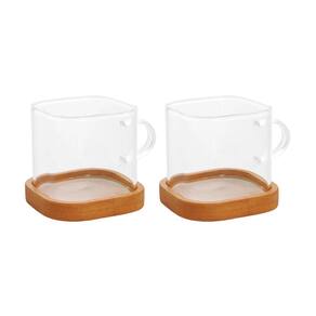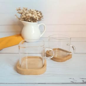 Conjunto De Xícaras Em Vidro Borossilicato Com Pires De Bambu Com 4 Peças 130ml Mimo Style -