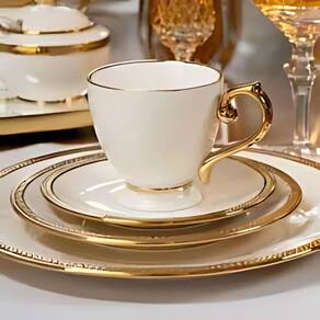 Elegância Duradoura: Feito em porcelana branca com detalhes dourados, encanta pela sofisticação e acabamento impecável. Um toque de requinte que surpreende a cada encontro.