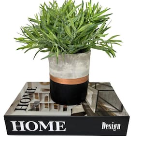 Nada mais encantador, original e inspirador do que utilizar livros na decoração de diversos ambientes, como salas de estar, escritórios, quartos, home office e onde mais sua imaginação permitir. Os livros decorativos são a mais nova tendência na decoração contemporânea e permitem diversas combinações e utilizações, dando um ar de sofisticação em mesas de centro, aparadores, prateleiras, escrivaninhas etc. Esse lindo livro estampa 'Home Design', irá encantar você pela riqueza de detalhes e qualidade no acabamento, junto do vaso preto de cimento artesanal que da um toque todo especial no ambiente.