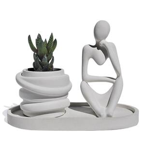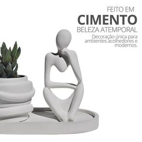 O Conjunto decorativo Estátua Pensadora Amora, Vaso Saturno e Bandeja Oval dará um toque de criatividade e charme ao seu ambiente. A Estátua Pensadora é ideal para mesas e prateleiras, o Mini Vaso Saturno, com design criativo, é perfeito para pequenos arr ou como um detalhe único em sua decoração. Descubra a beleza e idade dessas peças feitas artesanalmente em cimento.