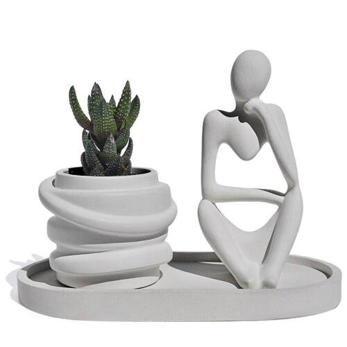 -Procurando por uma maneira fácil de adicionar um toque de beleza moderna à sua casa, cozinha ou escritório? Apresentamos a você o nosso Conjunto decorativo 3pçs Estátua Pensadora Vaso Saturno e Bandeja Oval Clássica