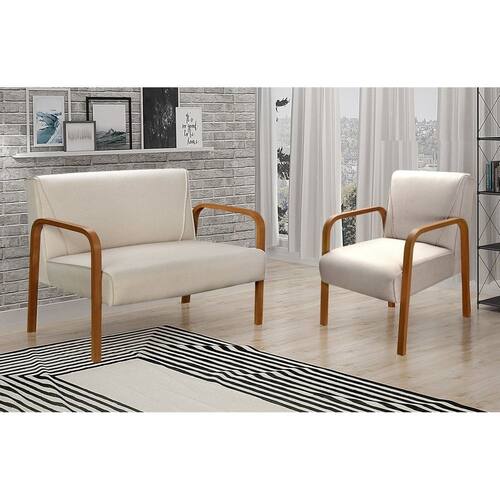 Conjunto Decorativo Anita Kit Namoradeira + Poltrona Sala, Recepção Bege 140