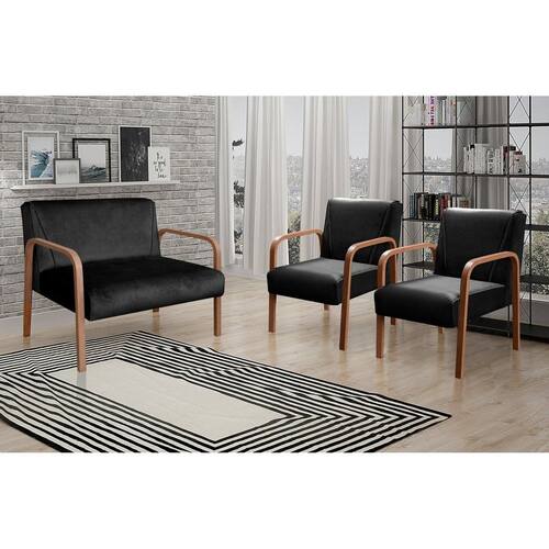 Conjunto Decorativo Anita Namoradeira + Poltronas Sala, Recepção Preto 410