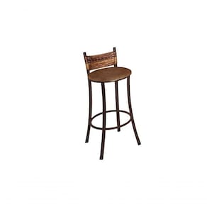 Tampo redondo em madeira pinus na cor Conhaque. Diâmetro do tampo: 60cm. Base tubular com altura de 100cm. Banqueta Dinamarca: