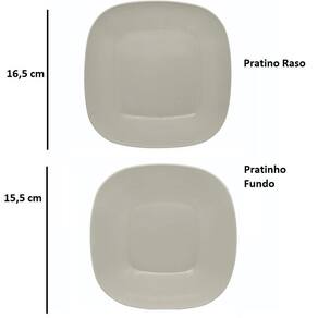 O conjunto é composto por um copo com capacidade de 320 ml, um copo com canudo de 700 ml, uma garrafa com alça de 500 ml, um pratinho raso, um pratinho fundo e um conjunto de talheres com colher, faca e garfo. Cada conjunto contém uma unidade de cada item mencionado.