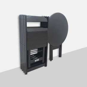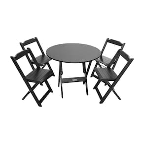 Conjunto Dobrável Mesa De Madeira 90cm Redonda Com 4 Cadeiras Preta - Tarimatã