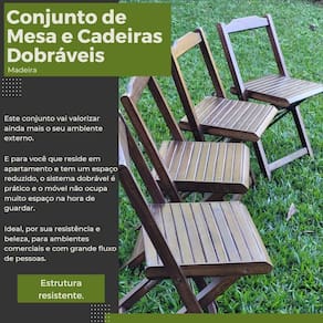 Conjunto Dobrável Prático Mesa Redonda Com 4 Cadeiras Imbuia