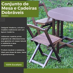 O Conjunto prático é fabricado somente com madeira nobre, para proporcionar para você cliente, uma durabilidade gigantesca. E como nós nos preocupamos muito com um meio ambiente sustentável, todo material utilizado é reflorestado.