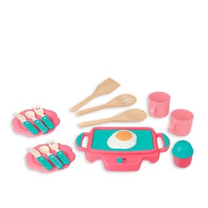 É o brinquedo perfeito para crianças que adoram imaginar, criar receitas e brincar de casinha, vem com diversos acessórios para tornar a brincadeira ainda mais realista e divertida. Este conjunto completo traz uma churrasqueira elétrica com frigideira, utensílios de madeira e acessórios coloridos, estimulando o desenvolvimento da coordenação motora, imaginação e habilidades sociais. O conjunto inclui 1 chapa estilo grill, 3 talheres grandes que imitam madeira, 2 pratinhos, 2 facas, 2 colheres, 2 garfos, 2 canecas, 1 saleiro, 1 ovo frito e 1 toalha de papel.