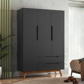 1x Guarda Roupa Infantil Retrô 3 Portas 2 Gavetas Alpi Móveis Preto Largura: 122,6 cm Altura: 182,1 cm Peso: 765 kg Profundidade: 48,2 cm Necessita Montagem: Sim