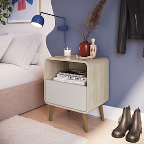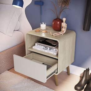A Mesa de Cabeceira com 01 Gaveta Linha Curve da Completa Móveis apresenta funcionalidade, praticidade e elegância com design arrojado e atemporal! Com cantos arredondados, traz uma leveza ao ambiente. As molduras laterais arredondadas são em MDF, garantindo qualidade superior. Possui uma gaveta com corrediça telescópica e pés plásticos. Produto entregue desmontado. Altura do Conjunto: 58 cm Ambiente: null Ambiente Principal: Quarto Cor: Carvalho Araguaia/Bege Dunas Informação Complementar: 2x Mesa de Cabeceira com 1 Gaveta Curve Carvalho Araguaia / Bege Dunas Largura: 47 cm Altura: 58 cm Peso: 12,1 kg Profundidade: 36 cm Necessita Montagem: Sim