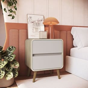 A Mesa de Cabeceira com 02 Gavetas Linha Curve da Completa Móveis apresenta funcionalidade, praticidade e elegância com design arrojado e atemporal! Com cantos arredondados, traz uma leveza ao ambiente. As molduras laterais arredondadas são em MDF, garantindo qualidade superior. Possui duas gavetas com corrediças telescópicas e pés plásticos. Produto entregue desmontado. Altura do Conjunto: 58 cm Ambiente: null Ambiente Principal: Quarto Cor: Carvalho Araguaia/Bege Dunas Informação Complementar: 2x Mesa de Cabeceira com 2 Gavetas Curve Carvalho Araguaia / Bege Dunas Largura: 47 cm Altura: 58 cm Peso: 13,6 kg Profundidade: 36 cm Necessita Montagem: Sim