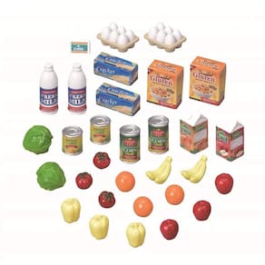 1 unidade principal1 piso1 balcão com caixa registradora1 prateleira1 scanner1 cesta de compras1 sacola de compras1 cartão de pontos2 cercas2 caixinhas de ovos2 itens enlatados (pequenos)2 itens enlatados (grandes)2 garrafas de leite2 sucos (maçã e laranja)2 pacotes de biscoitos2 caixas de cereais2 alfaces2 cachos de bananas3 laranjas3 maçãs3 tomates3 pápricas