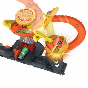 Conjunto e Pista - Hot Wheels City - Ataque de Cobra vs Pizzaria - Mattel: Bem-vindo à Hot Wheels City, a cidade onde cada esquina é uma aventura radical! Com os conjuntos de Hot Wheels City, é possível viver histórias incríveis e cheias de adrenalinas. Em Hot Wheels City você constrói seu mundo do seu jeito, para criar aventuras épicas Detalhes: • Salve a pizzaria Hot Wheels City de uma enorme cobra que tomou conta dela • Quando as crianças soltam a cauda da cobra, ela envia seus carros para um dos três caminhos escolhidos aleatoriamente e repletos de suspense e aventura. • O conjunto é apresentado na série Netflix Hot Wheels Let’s Race • O rastro da cauda leva à boca da cobra, a uma lixeira ou derruba a cobra com uma torta de pizza na cara! Informações: • Produto: Conjunto Pista Ataque de Cobra vs Pizzaria • Marca: Mattel • Coleção: Hot Wheels City • Linha: Hot Wheels Let’s Race • Tipo: Conjunto com Veículo • Categoria: Carrinhos e Cia • Subcategoria: Pistas, Cenários e Lançadores • Escala: 1/64 (Veículo) • Conteúdo: - 01 Conjunto de Pista Hot Wheels City - 01 Carro Hot Wheels em escala 1:64 • Recomendação: para crianças maiores de 04 anos de idade Especificações: • Referência: HTN81 • Código de Barras: 194735195121 • Embalagem (C x A x L): 40 x 25.5 x 10 cm • Embalagem (Peso): 1.26 kg • Composição / Material: Plástico • Registro: 006591/2021 • Certificado: Órgãos Autorizados - OCP´S (Organismos de Certificação de Produtos) Aviso: • As imagens são meramente ilustrativas • Os pesos, tamanhos e medidas são aproximados • As cores e estampas dos produtos podem ter variações • As informações são de responsabilidade do fabricante ou fornecedor