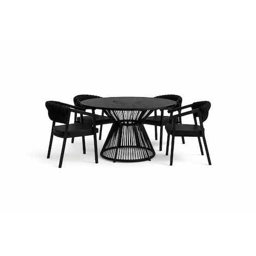 Ideal para salas de jantar, áreas gourmet, varandas, espaços externos, jardins e áreas de lazer, o Conjunto Trama transforma qualquer ambiente em um espaço elegante e acolhedor.
