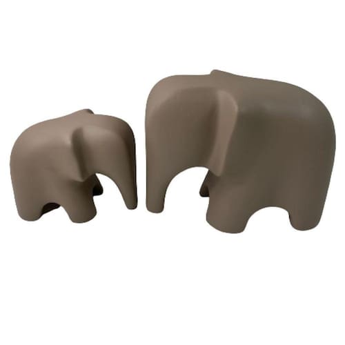 Conjunto enfeite elefante Mãe e Filho de cerâmica decorativo na cor Cáqui.