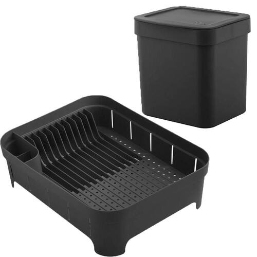 Conjunto Escorredor de Louças Pratos e Lixeira 2,5l OU para Pia ou Bancada Preto.
