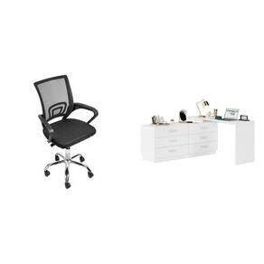 Conjunto Escritório 2 Peças Escrivaninha Mesa Leonie C/cômoda e Cadeira Diretor Tela Yescasa Branco/Preto