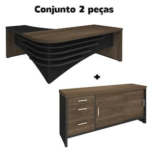 Se você deseja transmitir profissionalismo e sofisticação, invista em móveis de qualidade! Suporta Até (kg): 50 Altura do Conjunto: 75 cm Ambiente: null Ambiente Principal: Escritório Cor: Preto/Charuto Informação Complementar: 1x Mesa para Escritório em L Tamburato Diretor Charuto/PretoLargura: Altura: 75Peso: 89Profundidade: 180Necessita Montagem: Sim1x Balcão para Escritório 3 Gavetas 2 Portas de Correr Tamburato Charuto/PretoLargura: 160.5Altura: 75Peso: 70Profundidade: 44Necessita Montagem: Sim Possui Rodízio: Não