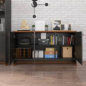 O Buffet Áustria conta com material em MDP, tampo em 25 mm, 3 prateleiras internas, 3 portas articuladas com dobradiças metálicas, puxadores em ABS e pés ripados em MDP com sapatas plásticas garantindo a durabilidade do seu móvel.