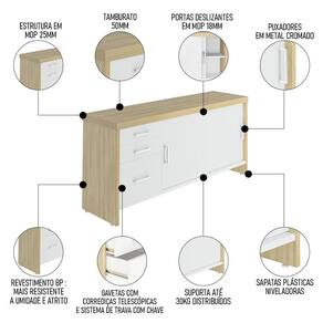 Conteúdo da Embalagem: 1 Mesa, 1 Balcão, 1 Armário.