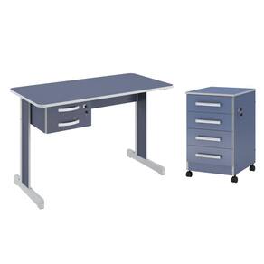 O Conjunto de Escritório com Mesa e Gaveteiro veio para deixar seu escritório ainda mais completo. A mesa é elaborada em MDP BP 15 mm com acabamento no Tampo com perfil em PVC, além de pés em aço com pintura EPOXI na cor cinza. O Gaveteiro é em MDP com bordas em ABS, corrediças metálicas e chave fechando simultaneamente todas as gavetas. Mesa possui duas gavetas em MDP de 15 mm com chave fechando SOMENTE a gaveta superior. O Gaveteiro da mesa pode ser montado dos dois lados, conforme nas imagens. Dimensões da Mesa: Altura: 75 cm Largura: 120 cm Profundidade: 60 cm Dimensões do Gaveteiro: Altura: 66 cm Largura: 40 cm Profundidade: 45 cm Informações Gerais: Gaveta: Sim (6 ao todo). Porta: Não. Pés: Sim, na mesa pés em aço com pintura EPOXI na cor cinza. Rodízios: Sim, 4 no gaveteiro. Cor Principal: Azul. Material principal: MDP Itens inclusos: - 01 Mesa para Escritório; - 01 Gaveteiro para Escritório; - Kit completo para montagem, manual de instruções para montagem. Garantia: 3 meses contra defeito de fabricação. Informações complementares: - Fotos meramente ilustrativas do produto no ambiente. - Verificar descrição e tamanho do produto antes da compra. - Avaliar a mercadoria no ato do recebimento e recusar em caso de divergência. - Limpar com flanela ou pano macio seco, não utilizar produtos abrasivos, desengordurantes, álcool ou solvente. Não expor o produto diretamente à luz solar e à umidade. * Sugerimos a contratação de um montador profissional para a montagem do produto. Não nos responsabilizamos por danos causados no ato da montagem. * Não nos responsabilizamos pela montagem e desmontagem do produto , assim como os custos gerados nestas situações. * Não nos responsabilizamos por subir escadas, corredores e elevadores ou guincho em apartamentos.