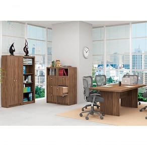 Conjunto Para Escritorio Tecno Mobili, móveis de qualidade que oferecem durabilidade e resistência, com estrutura em MDP de 15mm, pintura com acabamento em BP (Fosco). Armário com duas portas com dobradiças metálicas, prateleiras internas, Livreiro com prateleiras que suportam até 12 kg cada, Armário Para Pastas Suspensas possui 03 gavetas com suporte para pastas suspensas (pastas não inclusas), são gavetas com corrediças metálicas resistentes que suportam até 11 kg cada, tampo superior suporta até 5 kg, puxadores modernos, Mesa Para Renião com tampo amplo e resistente suporta até 25 kg, este Conjunto Escritório da Linha Tecno Mobili, possui diversas peças que são vendidas separadamente, são ideais pra você compor o melhor projeto pra seu escritório. Estes móveis chegarão em sua casa separados em 05 volumes.