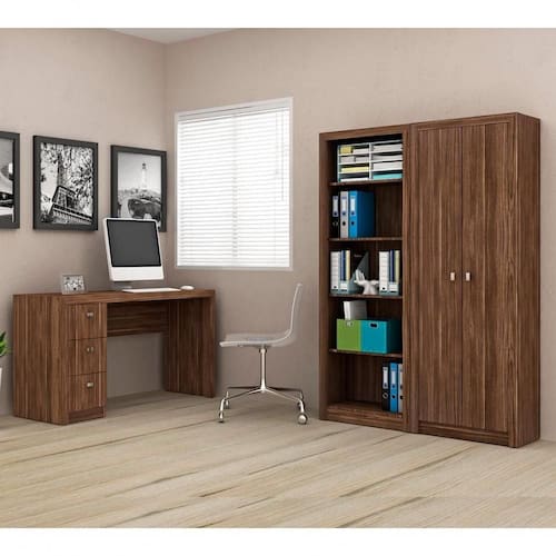 Conjunto Escritorio Completo 3 Peças Cj5 Nogal Nogal - Blush