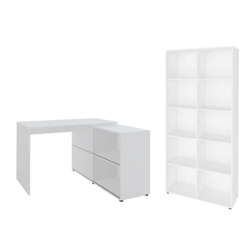 Conjunto Escritório Home: Escrivaninha 3227 + Estante 5333 - Branco
