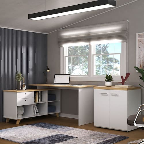 Conjunto Escritório Home: Escrivaninha 5946 + Balcão 6097 - Conjunto Escritório Home Artany Escrivaninha e Balcão