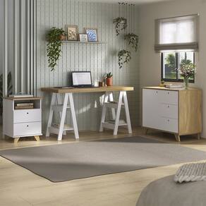 Ideal para quem busca praticidade e estilo na hora de montar seu escritório ou cantinho de estudo, o Conjunto Escritório Home Office 3 Peças Darte A06 Olmo/Branco , da Mpozenato, é a escolha perfeita para isso, a começar pelo design moderno e despojado.