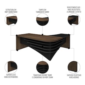Inove seu escritório e aumente sua produtividade com o conjunto de escritório com Conjunto Escritório Home Office 3 Peças Mesa Diretor Corp A06 Charuto/Preto, da Mpozenato.