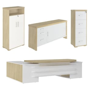 Conteúdo da Embalagem: 1 Mesa, 1 Balcão, 1 Armário Alto, 1 Armário Arquivo.