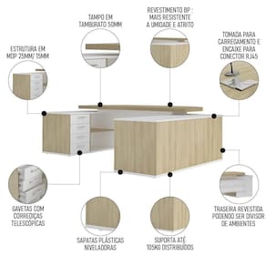 Melhore sua produtividade com o conjunto de escritório com Conjunto Escritório Home Office 4 Peças Corp A06 Carvalho/Branco, da Mpozenato.