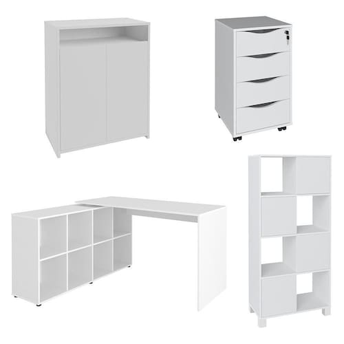 Com o Conjunto Escritório Home Office 4 Peças Mity A06 Branco, da Mpozenato, ter um escritório ou home office completo nunca foi tão fácil!