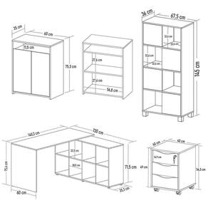 Conteúdo da Embalagem: 1 Mesa em L, 1 Estante, 1 Balcão, 1 Gaveteiro.