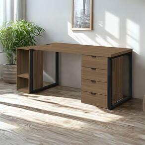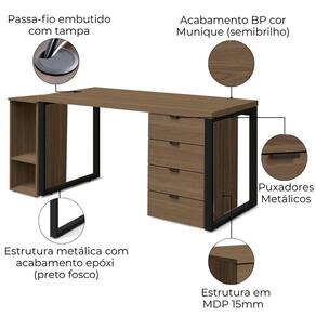 Conjunto para escritório Frame 03 peças, composto por Mesa para Computador, Gaveteiro e Suporte para CPU. Estrutura 100% MDP (tampo mesa 40 mm, demais módulos 15 mm), com acabamento BP. Conta com 4 gavetas equipadas com corrediças telescópicas, e suporte para CPU possui 2 nichos. Equipado com pés metálicos com pintura epóxi fosca, sapatas niveladoras e puxadores em alumínio. Indicado para salas de reunião, diretoria ou ambientes corporativos, com disposição de montagem conforme a necessidade do cliente. Estes produtos serão entregues em 04 volumes.