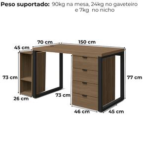 Conjunto para escritório Frame 03 peças, composto por Mesa para Computador, Gaveteiro e Suporte para CPU. Estrutura 100% MDP (tampo mesa 40 mm, demais módulos 15 mm), com acabamento BP. Conta com 4 gavetas equipadas com corrediças telescópicas, e suporte para CPU possui 2 nichos. Equipado com pés metálicos com pintura epóxi fosca, sapatas niveladoras e puxadores em alumínio. Indicado para salas de reunião, diretoria ou ambientes corporativos, com disposição de montagem conforme a necessidade do cliente. Estes produtos serão entregue em 04 volumes.