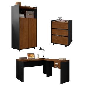O Conjunto Studio é moderno, compacto, versátil e trará mais organização em qualquer ambiente que estiver. O Armário possui 2 Portas com amplo espaço interno de armazenamento além de uma ampla mesa em L com 2 gavetas, possui também um Gaveteiro com 3 amplas gavetas para completar o ambiente. São produzidos em MDP BP e MDP que possuí maior resistência e durabilidade.