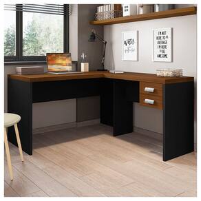 Mesa de Canto em L: - Possui 2 Gavetas com corrediças telescópicas - Possui Tampo de 40mm de espessura - Laterais de 25mm de espessura