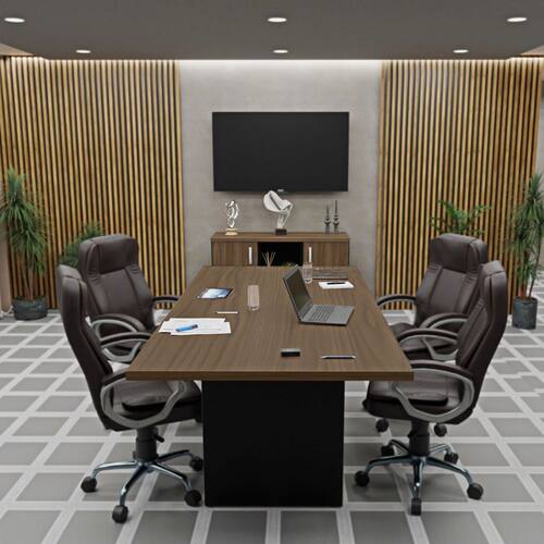 Conjunto Escritório Mesa Reunião Armário Credenza Escritório Office Netmobil - Nogal/Preto