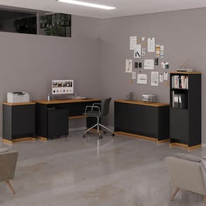 Um escritório moderno precisa de móveis à sua altura e por isso a ViaNossa desenvolveu o conjunto de escritório Austria que oferece qualidade e durabilidade para seus móveis. Trazendo versatilidade e modernidade ao seu ambiente.