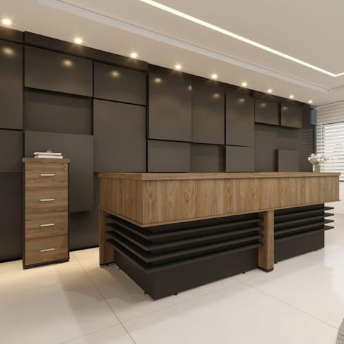 Deseja um ambiente corporativo elegante para receber bem seus convidados e clientes? O Balcão Tamburato Atendimento da Artany é perfeito para isso, pois é um produto sofisticado e ideal para atendimentos. Peças de Tamburato de 50mm de espessura certificam muita robustez e qualidade. Na parte interna há amplo espaço para trabalhar de forma organizada. A combinação de um balcão ao lado do outro tornará sua recepção ainda mais sofisticada, funcional e imponente!