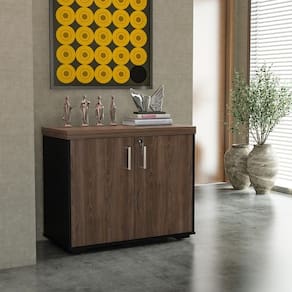 O balcão possui uma prateleira interna para melhor armazenamento. Acompanha chave para o travamento das portas, possibilitando a segurança e privacidade que você precisa!