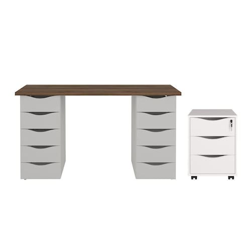 Requer montagem: Sim | Inclui manual de montagem: Sim | Quantidade de caixas de embalagem: 2 | Comprimento: 45,4 | Profundidade: 45,4 | Altura: 75,3 | Largura: 136 | CONTEÚDO DA EMBALAGEM: 1 Escrivaninha 1 Gaveteiro | INSTRUÇÕES/CUIDADOS: Limpar com pano macio e seco, não utilizar produtos abrasivos. | PRODUTO PRECISA DE MONTAGEM?: Sim, a montagem é simples mas sugerimos a contratação do nosso de montagem (para os CEPs em que o está disponível) ou de algum experiente de sua preferência | COMPRIMENTO PRODUTO COM EMBALAGEM (CM): 49 | PESO DO PRODUTO (KG): 52,5 | CORES DO PRODUTO (FILTRO DE CORES): Branco | MATERIAL PARA FILTRO: MDP/MDF | NOME DO PRODUTO NO FORNECEDOR: ESCRIVANINHA DUE NOGAL/BRANCO (6023) + GAVETEIRO FACE BRANCO (5685) | PAÍS DE ORIGEM: | ESTADO DE ORIGEM: PR | LARGURA DO PRODUTO (CM): 136 | ALTURA DO PRODUTO COM EMBALAGEM (CM): 24,5 | MATERIAL PRINCIPAL: MDP/MDF | TEMPO DE (DIAS): 3 | MARCA: Artany | DESCRIÇÃO DO TAMANHO: Altura: 75,3 cm x Largura: 136 cm x Comprimento: 45,4 cm | MODELO: Conjunto Escrivaninha e Gaveteiro Rostock | PESO PRODUTO COM EMBALAGEM (KG): 54,1 | LARGURA PRODUTO COM EMBALAGEM (CM): 159 | COR PREDOMINANTE: Branco | ALTURA DO PRODUTO (CM): 75,3 | COMPRIMENTO DO PRODUTO (CM): 45,4