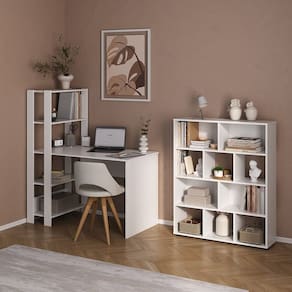 Conjunto escrivaninha Match e estante Book com diversos nichos Branco
